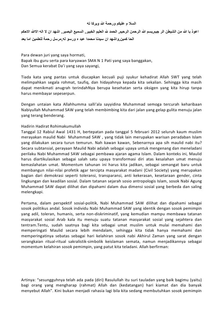 Teks pidato maulid nabi lucu k muharram. Contoh pidato sambutan ketua panitia maulid nabi muhammad … contoh kata sambutan acara maulid contoh kata sambutan panitia maulid sambutan . Bagi seorang ketua panitia acara maulid nabi, pidato merupakan salah satu hal yang tidak boleh terlupakan untuk disiapkan. Contoh pidato bahasa sunda acara maulid nabi september o. Teks pembawa acara maulid nabi muhammad saw.